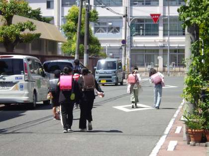 5月9日(火)家庭訪問のため午前中の授業です。授業を終えて下校しています。気を付けて。