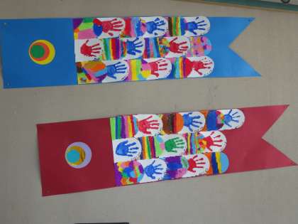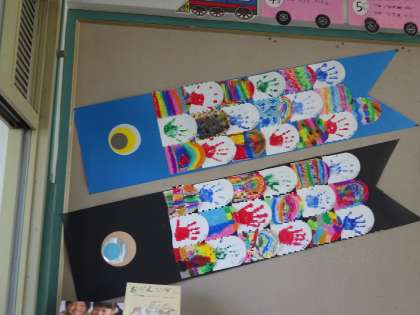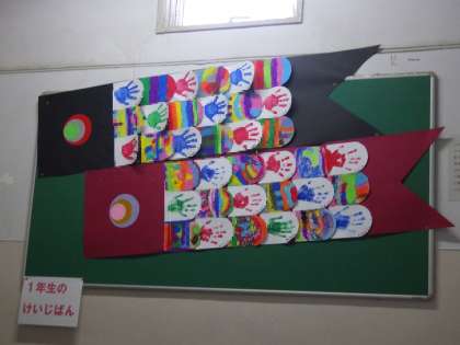 5月10日(水)1年生が制作したこいのぼりが力づよく泳いでいます。