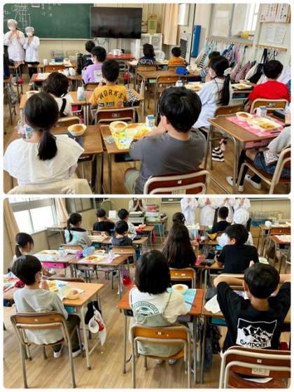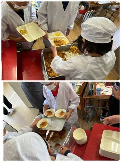 食べ盛り育ち盛りで、スパゲッティのおかわりにたくさんの児童が並んでいました♪