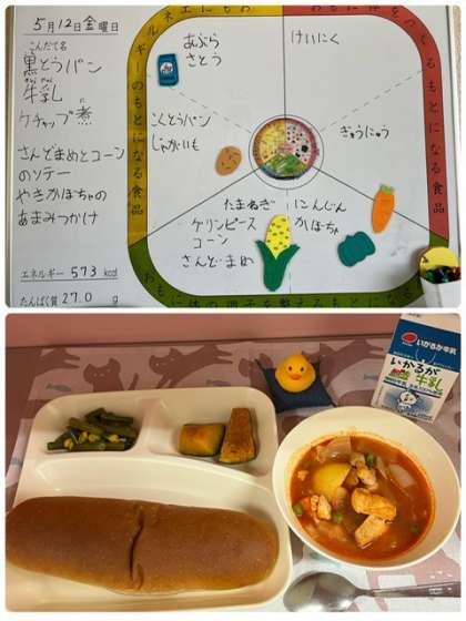 給食ではたくさんの食材が使われているので、これから少しずついろいろな食べものの味を知ってもらいたいと思っています^^