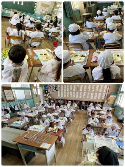 かぼちゃやさんどまめ。食べるのに少し勇気がいる児童もいましたが、ちいさーく切って一口食べてみようと声をかけると、ほとんどの児童が「おいしい…!」といって食べることができました^^