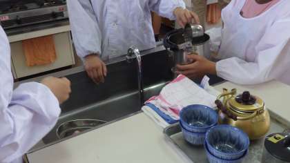 5月15日(月)5年生の調理実習の様子です。コンロを安全に使いお茶を入れる実習です。