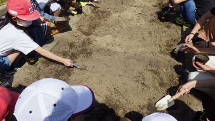 5月16日(火)学習園で4年生はへちまを植えています。どんなへちまができるか楽しみです。」