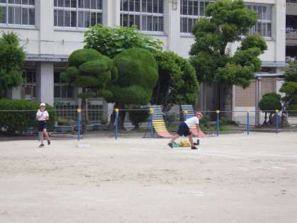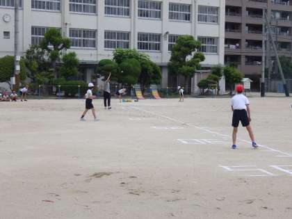 5月23日(火)今日から新体力テストが始まりました。5年生のソフトボール投げです。