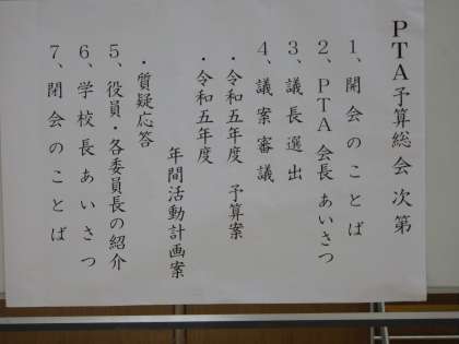6月6日(火)令和5年度PTA予算総会を行いました。令和5年度PTA会長様はじめ役員、実行委員の皆様よろしくお願いいたします。また、本日は悪天候の中、ご出席いただきました保護者の皆様、ありがとうございました。