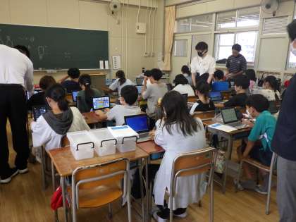 6月12日(月)6年生は大阪工業大学からプログラミング専門の先生に来ていただきプログラミングについての学習をしました。2組の様子です。