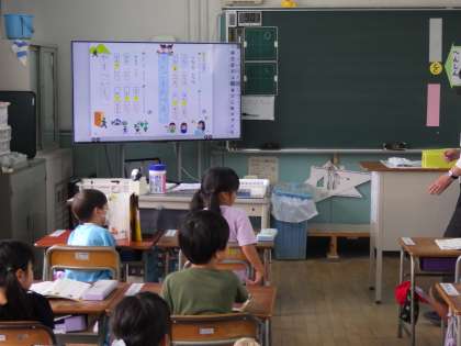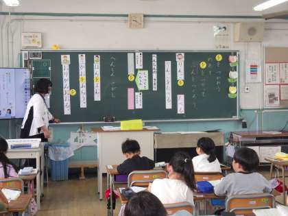 6月13日(火)1年2組での研究授業の様子、国語です。頑張っています。