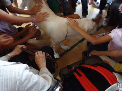 9月25日(金)に3年生の児童が、盲導犬の役割についてのお話を聞かせていただいたり、視覚障がいのある方が楽しめるよう工夫された卓球を体験したりしました。質問タイムには、子どもたちから講師の方に、「盲導犬に英語で指示するのはどうしてですか?」「盲導犬が体に付けているものは何ですか?」など多くの質問がありました。どの質問にも講師の方から丁寧に答えていただき、子どもたちは理解を深めることができました。