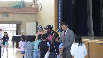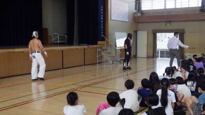 6月16日(金)大阪プロレスのみなさんが体育館で技を披露してくれました。すごい迫力でした。