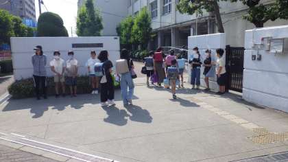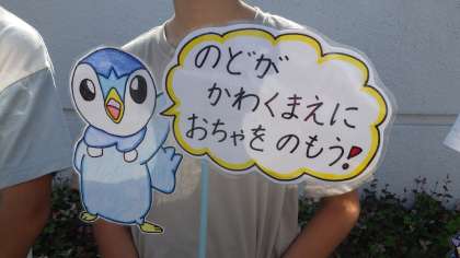 6月19日(月)保健委員さんが「健康になろうぜ週間」で校門で呼びかけてくれています。