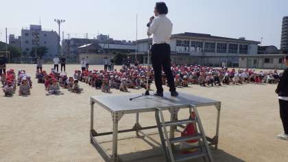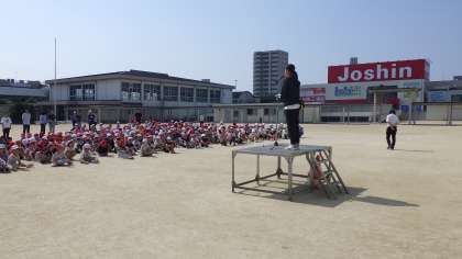 6月19日(月)日差し強くなってきていますが子どもたちは元気です。今日の全校朝会ではソフトボールが区の大会で優勝しました。サッカーでも優勝しました。その賞状やトロフィーの伝達を行いました。