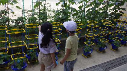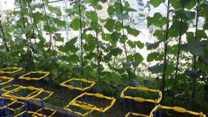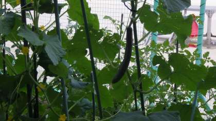 6月19日(月)運動場の西側の学習園でおいしそうなキュウリが実っています。