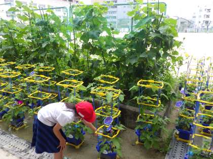 7月5日(水)1年生が大事に育てているあさがおがきれいな花を咲かせています。