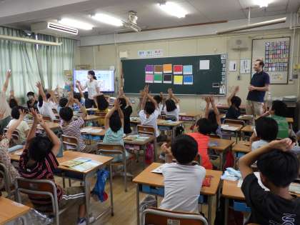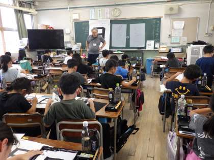 7月5日(水)3年生の英語、書写の授業の様子です。英語はC-NETの先生の授業です。