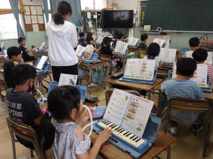 7月5日(水)2年生の音楽の様子です。鍵盤ハーモニカを吹いています。上手に吹けました。