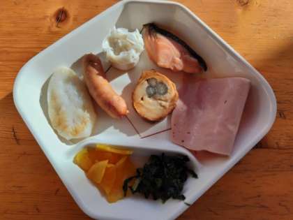 7月22日(土)今日の活動を頑張るために、朝ごはんしっかりたべています。天気は快晴。気温は22℃。みんな元気です。