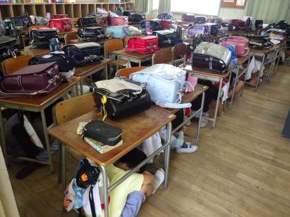 9月1日(金)今日は関東大震災から100年になります。放送で机の下に避難し安全を確保しています。「自分の命は自分で守る。」その後集団下校しました。
