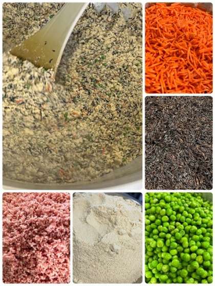 今日は粉末状の高野どうふを、豚ひき肉やひじきなどと一緒に調理しています。