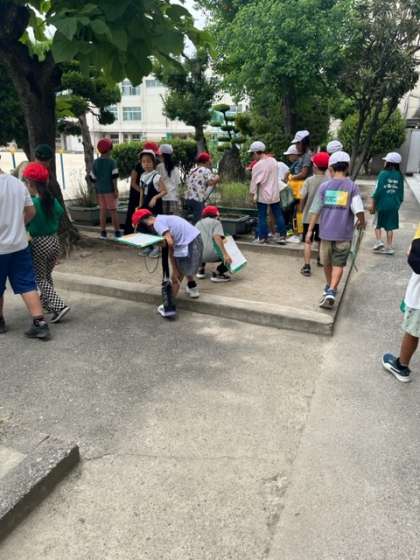 新森小路小学校にいる、生き物を調査しました。曇り空のおかげで、観察しやすかったです。