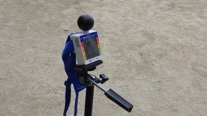 9月6日(水)今日は少し曇っています。熱中症予防のための機器を運動場に設置しました。運動場で体育の授業をしています。