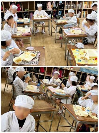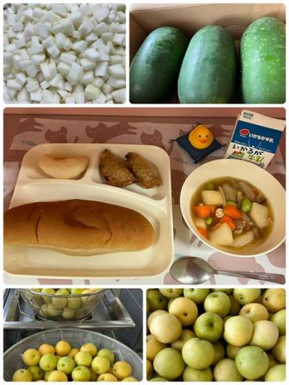 給食室で皮と芯を取ってもらっているので、低学年の児童も食べやすかったようです。