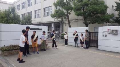 9月19日(火)あひるの力や運動で代表委員のみなさんが正門であいさつしてくれています。代表委員のみなさんありがとう。