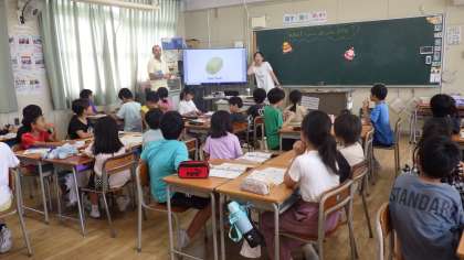 9月20日(水)6年生の算数、3年生英語の「授業の様子です。3年生はC-NETの先生の授業です。頑張っています。