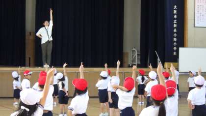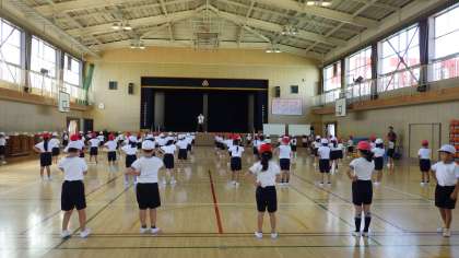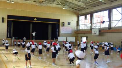 10月2日(月)運動会に向けて1年生が体育館でダンスの練習をしています。頑張っています。