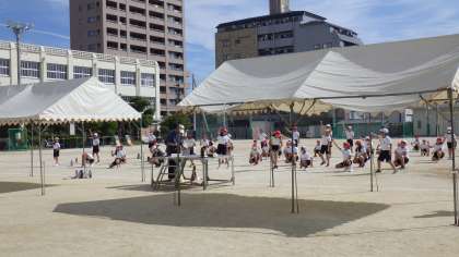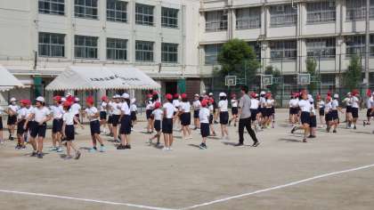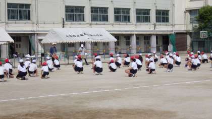 10月3日(火)運動会に向けて5年生が運動場でダンスの練習をしています。頑張ってます。
