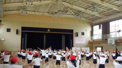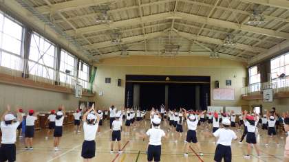 10月3日(火)運動会に向けて3年生が体育館でダンスの練習をしています。頑張っています。