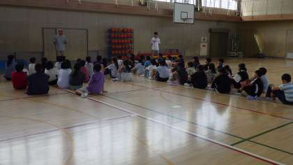 10月3日(火)体育館で応援団の結団式を行っています。団長、副団長などを決めています。応援団のみなさん、よろしくお願いします。