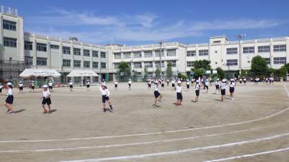 10月11日(水)運動会に向けて2年生が運動場で練習をしています。がんばっています。