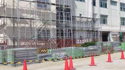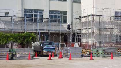 10月11日(水)校舎の長寿命化工事で足場が組み立てられています。