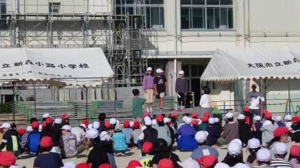 10月12日(木)爽やかな秋空の下、にじいろ集会を行いました。子どもたちは元気に参加し楽しい時間を過ごしました。