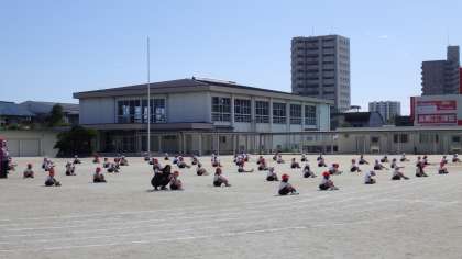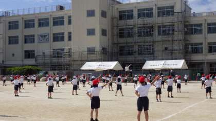10月12日(木)運動会に向けて1年生が運動場で練習しています。頑張っています。