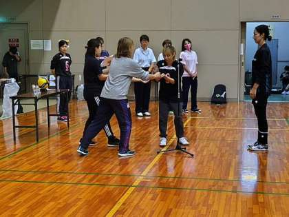 10月15日(日)旭区スポーツセンターにて旭区PTAママさんバレーボール大会が開催されました。新森小路小学校はディフェンディングチャンポン、優勝カップの返還です。