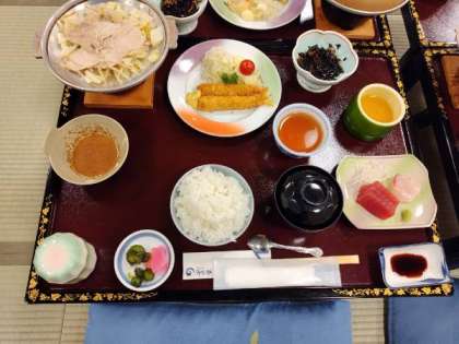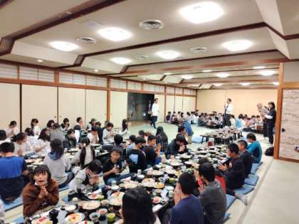10月16日(月)楽しい夕食です。みんなそろっていただきます。気温は20℃、快晴。子ども達は元気です。