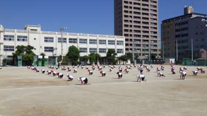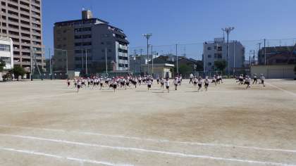 10月18日(水)1年史が運動場でダンスの練習をしています。