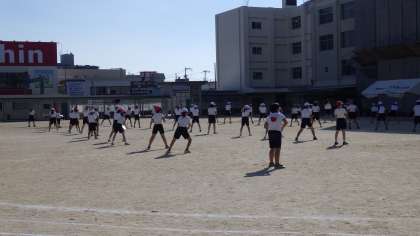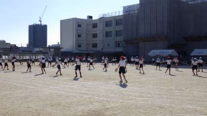 10月18日(水)5年生が運動場でダンスの練習をしています。