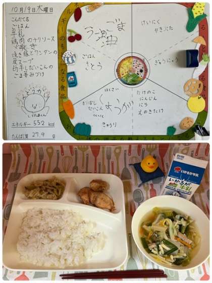 今日の「鶏肉のチリソース焼き」は、しょうが汁、にんにく、砂糖、塩、こいくちしょうゆ、ケチャップ、トウバンジャンで下味をつけて、スチームコンベクションオーブンで焼いています。甘みの中にも少しピリッとした辛さのある味付けで、ごはんがすすみ子どもたちにも好評でした^^