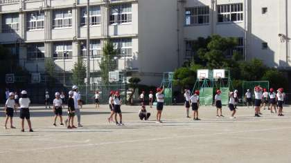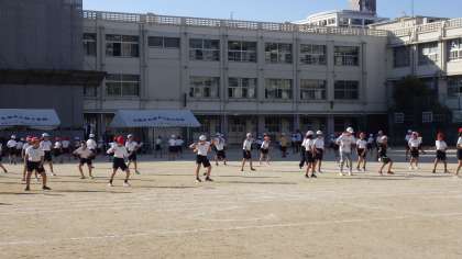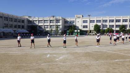 10月19日(木)4年生が運動場でダンスの練習をしています。