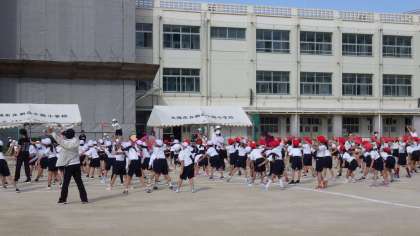 10月23日(月)秋空の下運動会に向けて合同練習を行いました。
