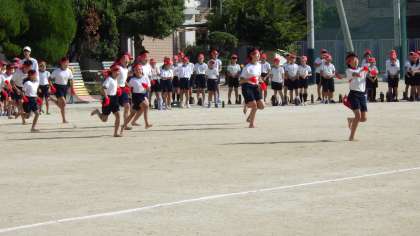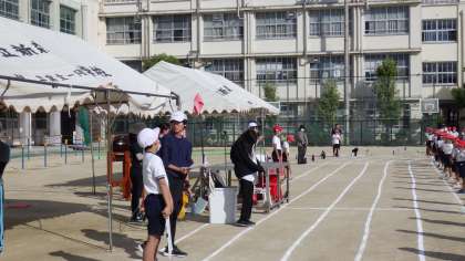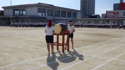 10月23日(月)秋空の下運動会に向けて合同練習を行いました。