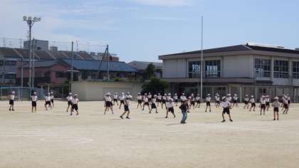 10月24日(火)2年生が運動場でダンスの練習をしています。頑張っています。