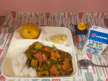 今日の給食は、みんな大好きカレーライスの日でした^^