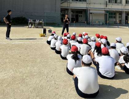ボールを上手にキャッチする方法、遠くへ強くボールを投げる方法を中心に教えていただきました。