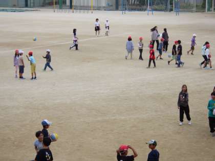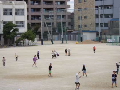 11月6日(月)休み時間、子どもたちは元気に遊んでいます。11月に入ったのですが少し暑さが残っています。