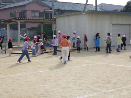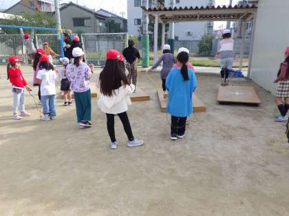 11月9日(木)運動場に縄跳びの飛び板が設置されました。子どもたちは順番を守って楽しく遊んでいます。