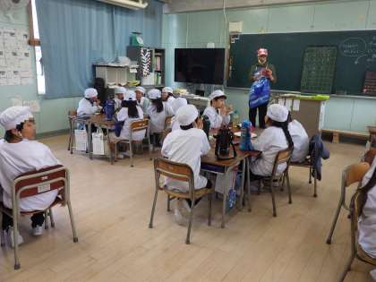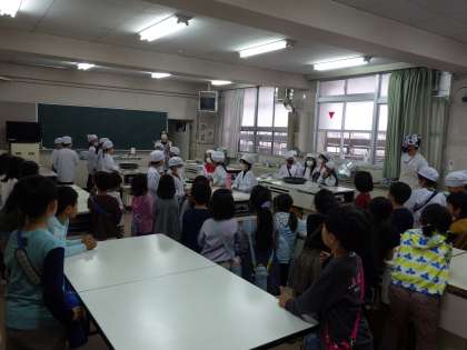 11月9日(木)2年生が学習園でとれたサツマイモをホットプレートで焼いて食べました。1年生と交流しています。やきいもおいしかったです。