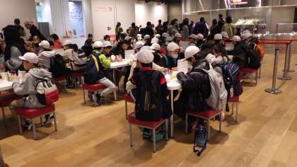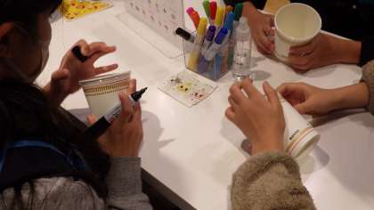 11月13日(月)5年生 社会見学 カップヌードルミュージアムでの活動です。世界に一つだけのマイカップヌードルを作っています
